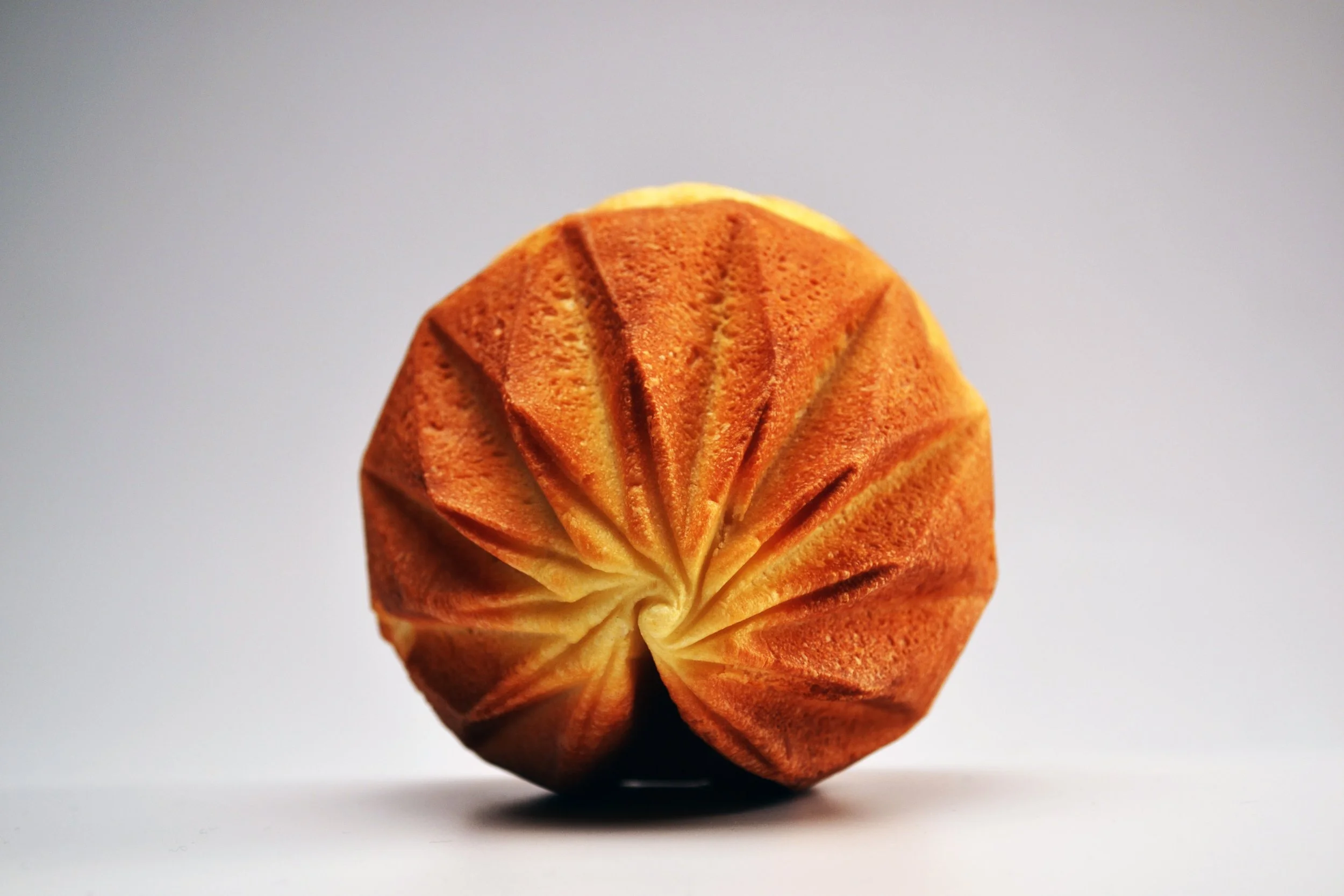 L’enjeu technique d’Origato repose sur la résistance du papier face à la pousse d’une pâte levée. À travers une série de recherches géométriques, j'ai conçu des structures capables de contenir la pâte pendant la cuisson sans s'affaisser. Le moule devient l'empreinte graphique de la brioche : les lignes du pliage se marquent sur la croûte, créant une signature visuelle unique pour l'artisan.